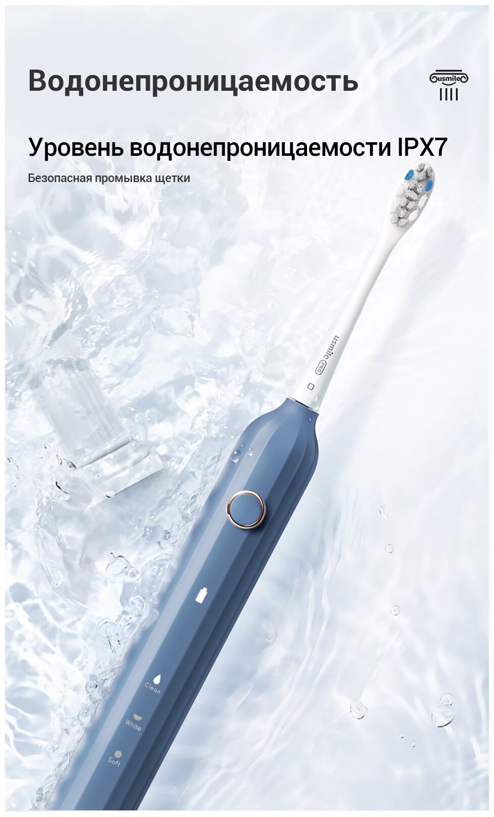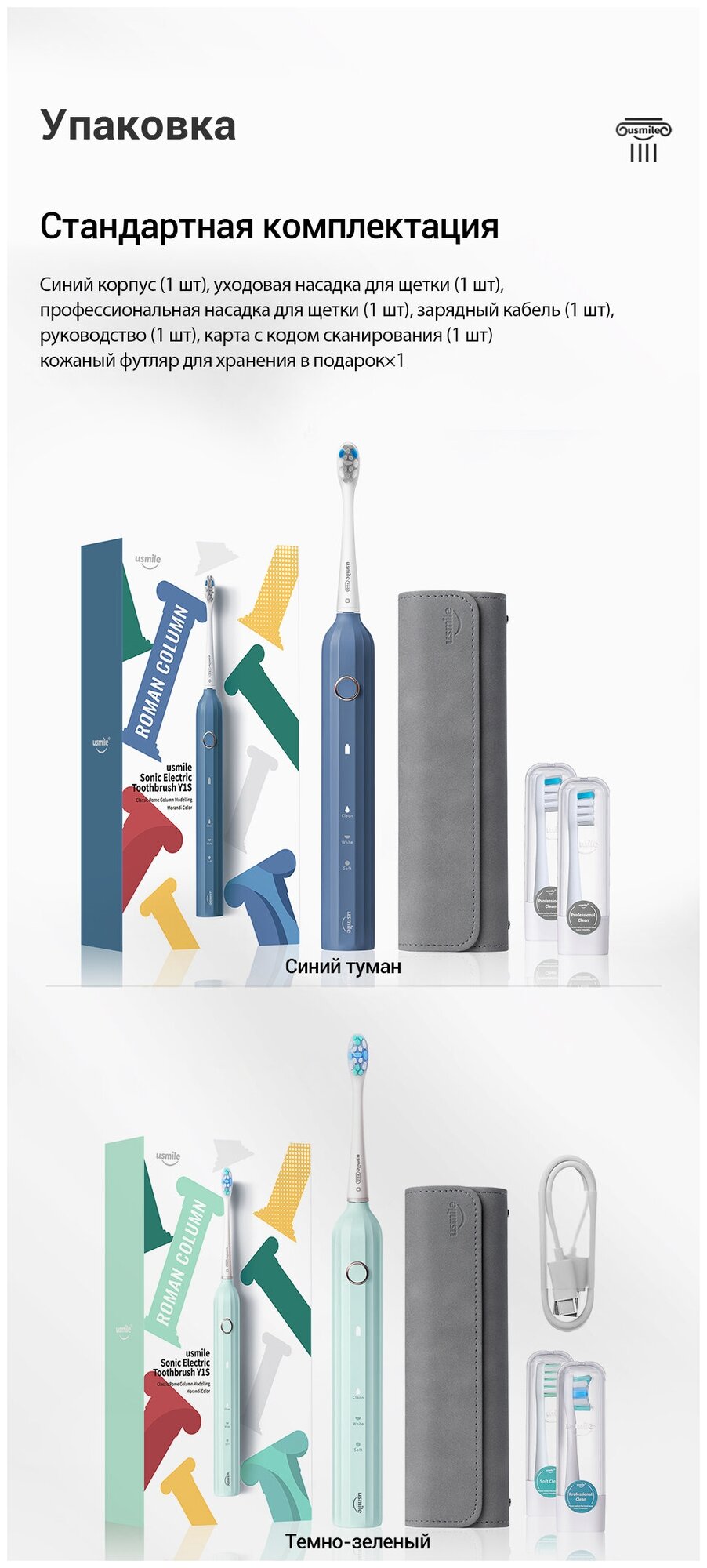 Синий корпус ×1, Уходовая насадка для щетки x 1, профессиональная насадка для щетки x 1, зарядный кабель x 1, руководство x 1, карта с кодом сканирования x 1