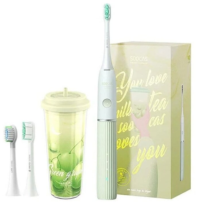 электрическая зубная щётка, насадки 2 шт., зарядный кабель USB-C (без адаптера), стакан