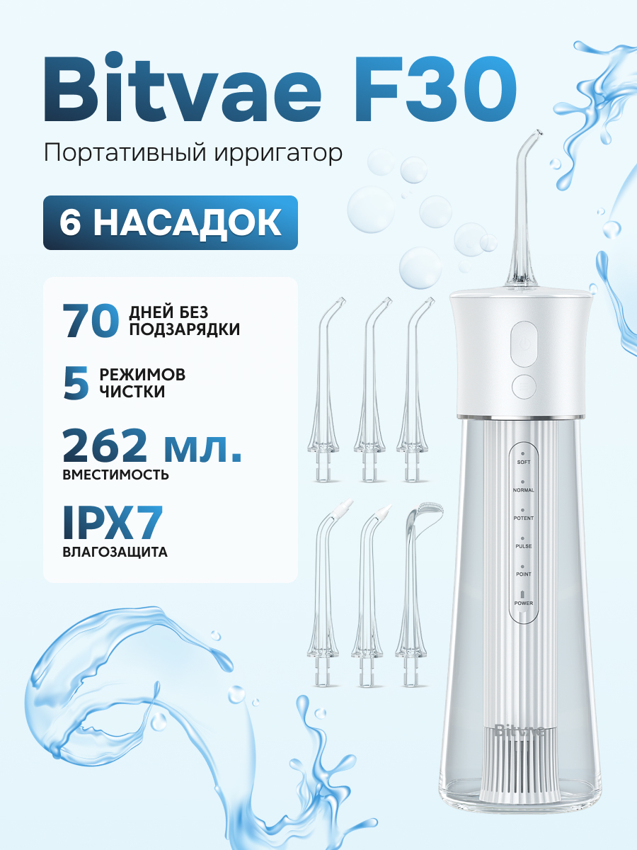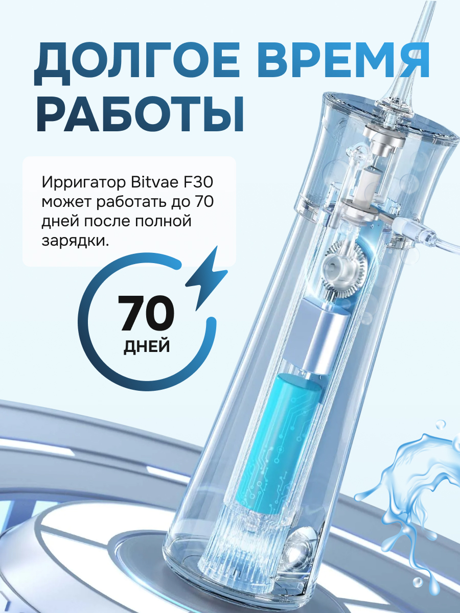 Основное назначение ирригатора: очистка труднодоступных и недоступных для зубной щетки поверхностей зубов. Тонкий, стильный, универсальный и компактный. Ирригатор Bitvae F30 демонстрирует инновационный внешний вид: гладкий и элегантный дизайн, делает его эргономичным для мужчин и женщин, и обеспечивает удобство в руке.