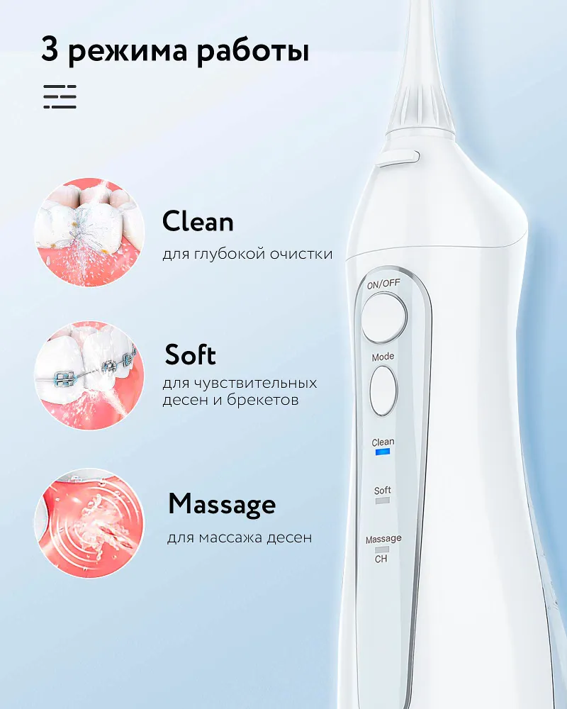 3 режима промывания подойдут для различных зубов и десен