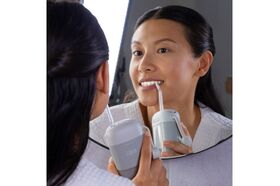 Портативный ирригатор для зубов со складным корпусом обеспечит комплексный уход за полостью рта в поездке и сэкономит место в маленькой ванной. В сложенном виде прибор всего 15 см в длину, но по эффективности сопоставим со стационарными моделями. Частота пульсаций струи от 1200 до 1500 в минуту позволяет качественно удалить налет, промассировать десна и мягкие ткани рта, очистить от остатков еды ортодонтические конструкции. 8 ступеней регулировки напора струи способствуют как бережной, так и глубокой чистке зубов. Компактный ирригатор работает в 4 режимах: пульсация, мягкий, стандартный и «сделай сам» – он поможет самостоятельно задать комфортный уровень давления воды. Прибор оснащен 3 насадками: обычной для труднодоступных мест, ортодонтической – подходит для брекет-систем и насадкой для удаления налета. От других портативных ирригаторов устройство отличает вместительный резервуар на 230 мл. Этого объема хватит для 1 чистки полости рта без дозаправки. Также прибор позволяет применять шипучие таблетки для полоскания ротовой полости и оснащен контейнером для их хранения. Беспроводной ирригатор прошел клинические испытания и имеет медицинское регистрационное удостоверение. Емкости встроенного аккумулятора хватит на 4 часа без подзарядки, это около 2 недель применения.