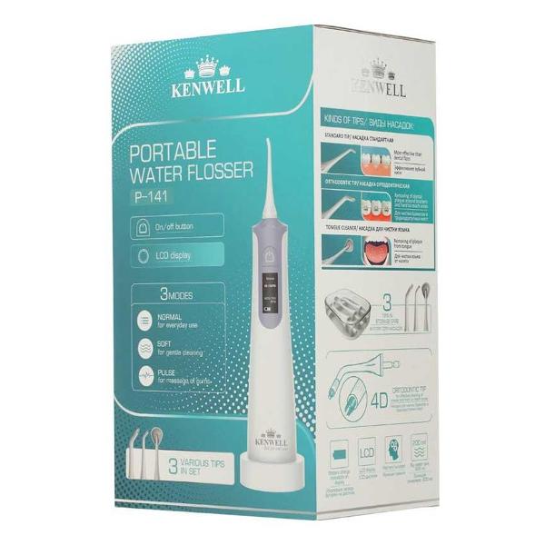 Ирригатор Kenwell P-141 White поставляется с насадкой для чистки языка. Модель оснащена емкостью для воды объемом 200 мл. Для восполнения ресурса батареи требуется 5 ч. Устройство имеет три уровня давления. Насадка вращается на 360°, что отвечает за тщательное удаление налета. Во избежание поломки ирригатора при использовании в душе предусмотрен водонепроницаемый корпус. Световой индикатор оповещает о низком уровне заряда батареи. Для бережного очищения брекетов и имплантов в комплекте поставляется ортодонтическая насадка.