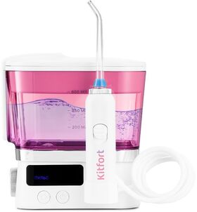 Описание Стационарный и портативный ирригатор КТ-2917 - это простой и эффективный прибор для чистки полости рта. Тонкая и сильная струя воды, подаваемая под давлением от 0,7 до 8 бар, вымывает остатки еды, налёт из межзубного пространства, массажирует дёсны.