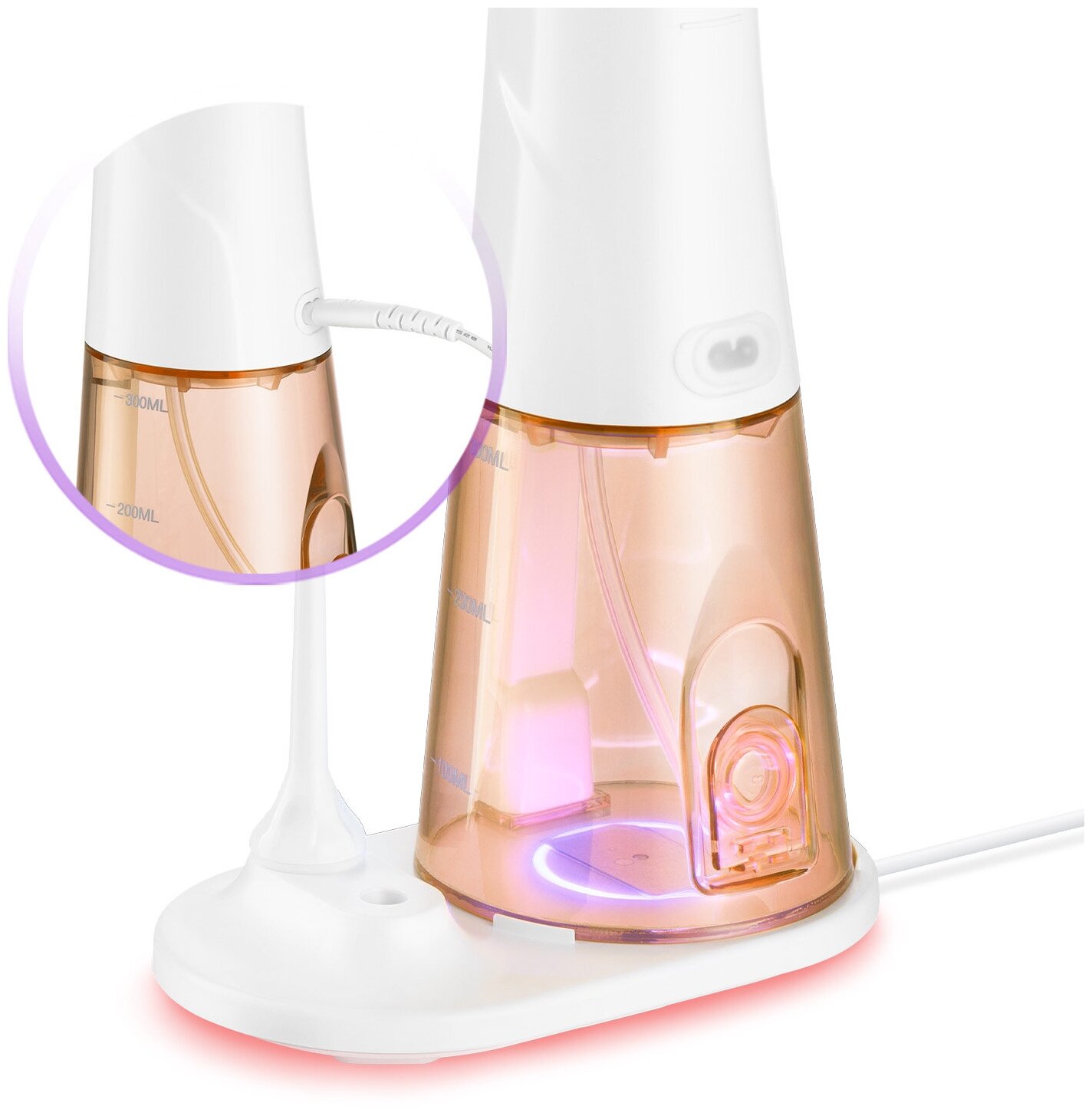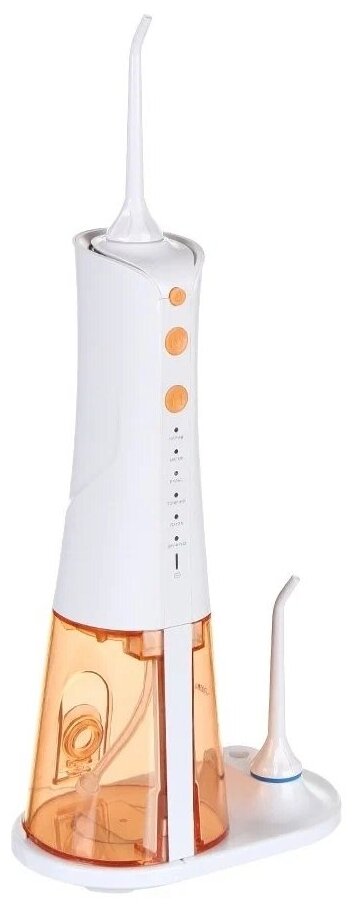 Комплектация 1. Ирригатор –– 1 шт. 2. Резервуар для воды –– 1 шт. 3. База для зарядки –– 1 шт. 4. USB-шнур – 1 шт. 5. Струйная насадка –– 2 шт. 6. Руководство по эксплуатации — 1 шт. 7. Коллекционный магнит — 1 шт.* *опционально