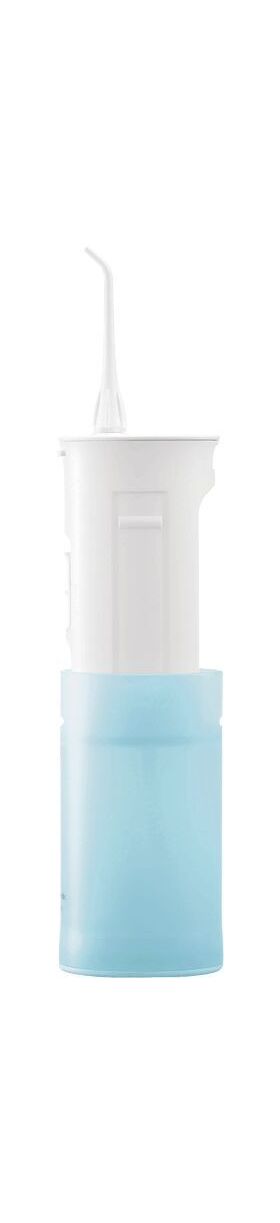 Panasonic EW-DJ10 - самый компактный из линейки Панасоник, который замечательно подходит для путешествий, но его можно эффективно использовать и дома. Благодаря небольшому весу и маленькому размеру в сложенном состоянии (14,2 см.) модель можно взять с собой на дачу, в гости, и даже в длительное путешествие. Небольшой ёмкости водного резервуара хватит на 40 секунд непрерывной подачи, что обычно вполне достаточно для эффективной очистки полости рта после зубной щётки.
