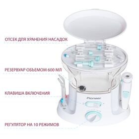 Профессиональный стационарный ирригатор с 7 насадками, увеличенным резервуаром для воды и регулятором давления струи позволит вам производить эффективный и безопасных уход за полостью рта в домашних условиях. Ирригатор прекрасно справляется с удалением налета и остатков пищи даже из самых труднодоступных мест между зубами и деснами.