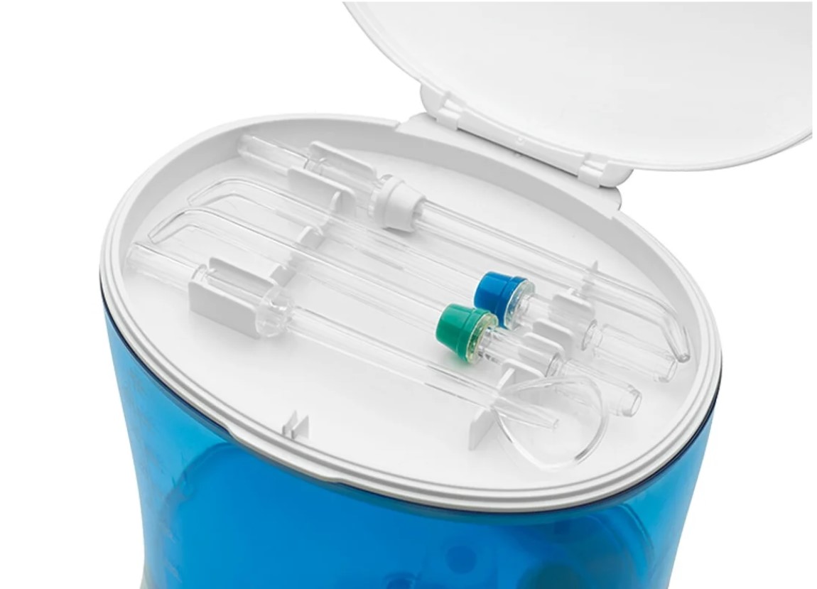 Для ухода за полостью рта — массажа десен и чистки между зубами Бесступенчатая регулировка давления воды Кнопка отключения воды на ручке Кнопка ВКЛ / ВЫКЛ на базе Таймер на 2 минуты (рекомендуемое время очистки) 3 насадки с разноцветной маркировкой Насадка очистки языка Хранение насадок в базе Емкость для воды 600 мл Место хранения кабеля Питание: 100-240 В, 50/60 Гц, 0,8 А Выход: 12 В = 1500 мА