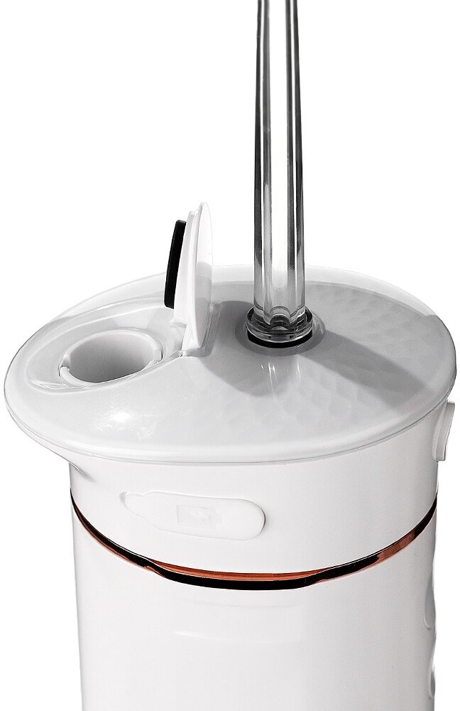 Компактный, легкий, с выдвижным резервуаром Идеален для поездок Отличная профилактика болезней зубов и десен Емкость резервуара — 180 мл Корпус изготовлен из ударопрочного пластика Уровень давления воды: от 200 до 800 кПа Частота пульсации: от 1400 до 1800 в минуту 5 уровней давления и 3 режима работы Аккумулятор держит заряд 15 дней