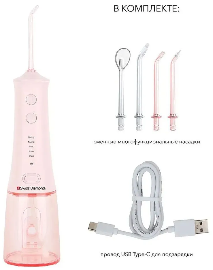 документация; ирригатор; сменные многофункциональные насадки – 4 шт; провод USB Type-C для зарядки