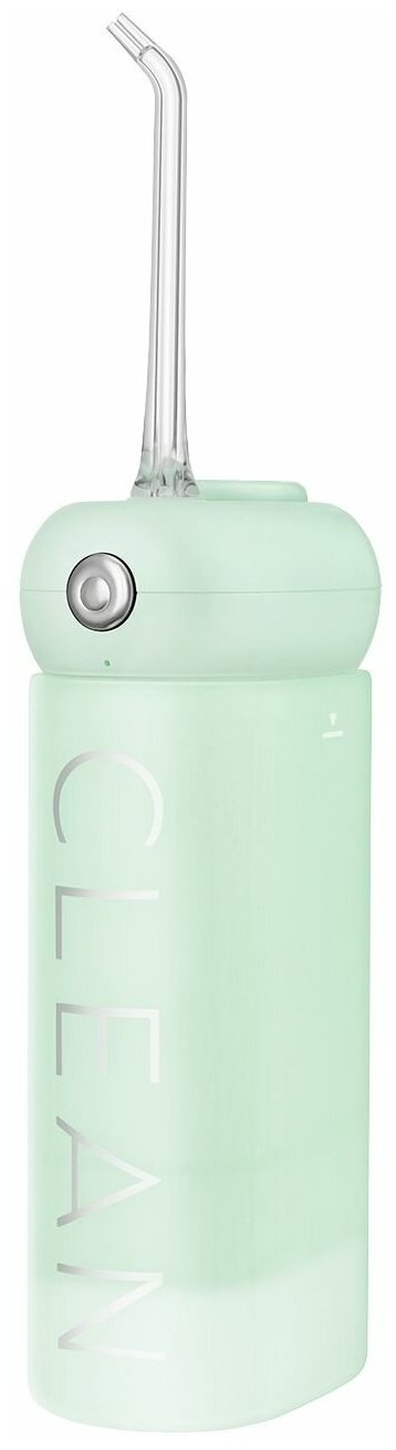 Ирригатор в корпусе зеленого цвета оснащен импульсной системой подачи воды. У него четыре режима работы, включая турбопоток и монопоток.