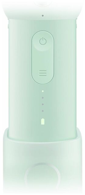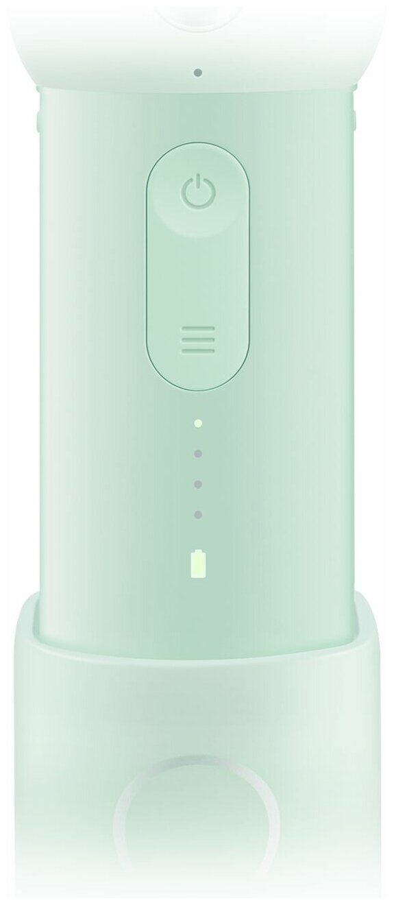 Модель портативная, она весит всего 340 г. Управление кнопочное. Ирригатор работает от встроенного аккумулятора, который подзаряжается от электросети. Полного заряда хватает примерно на 90 дней работы.