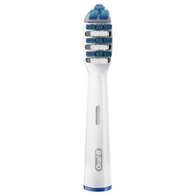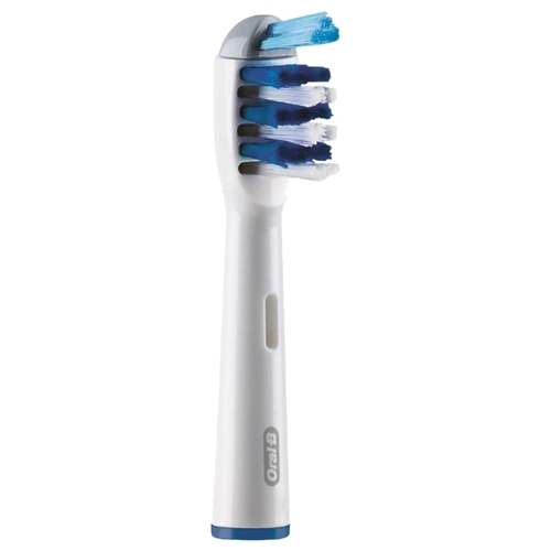 Такая же форма насадки, как у мануальной щётки, поэтому подойдёт для людей, не желающих менять ежедневные привычки. Головка щётки на 20% меньше по размеру, но покрывает площадь на 43% больше, чем головка мануальной щётки. Выступающие щетинки Power Tip очищают труднодоступные места, стационарная пульсирующая щетина качественно очищает поверхность зубов, а удлинённая вращающаяся пульсирующая щетина проникает в межзубное пространство. Закруглённые на кончиках щетинки обеспечивают безопасность применения. Голубые щетинки Indicator обесцвечиваются наполовину, сигнализируя о необходимости замены насадки (в среднем раз в 3 месяца). Подходит для всех электрических щеток Oral-B (кроме звуковых).