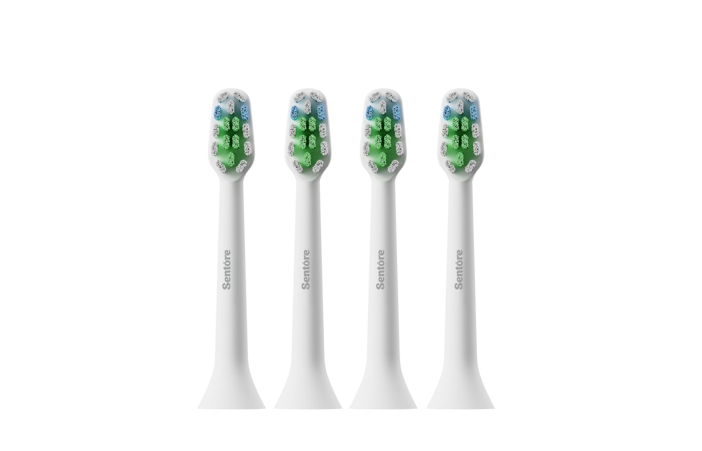 SENTORE HEADS 4 SONIC – это оригинальные насадки для ультразвуковой зубной щётки SENTORE SONIC EX5. Щетина обладает средней жёсткостью и изготовлена из высококачественного нейлона DuPont. Она безопасна для ежедневного использования и подходит для чистки зубов, дёсен и языка.