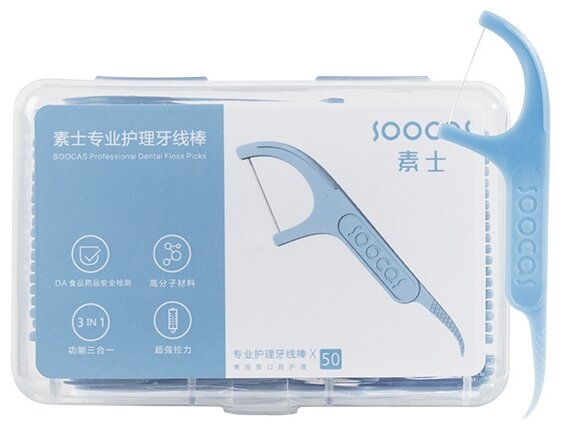 SOOCAS нить изготовлена из высокомолекулярного полиэтиленового волокна (пищевого сорта), который ранее использовался для брони военных целей. Мягкое и сильное натяжение, максимальная несущая способность 3,15 кг, а также легкое скольжение в зубах, обеспечат осторожный уход за полостью рта.