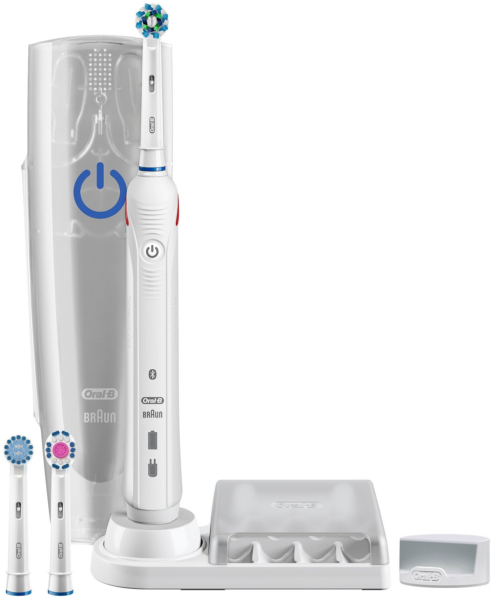 Насадка для бережной очистки Sensitive Clean, насадка для отбеливания 3D White, насадка средней жесткости CrossAction, зарядное устройство, футляр, подставка, документация