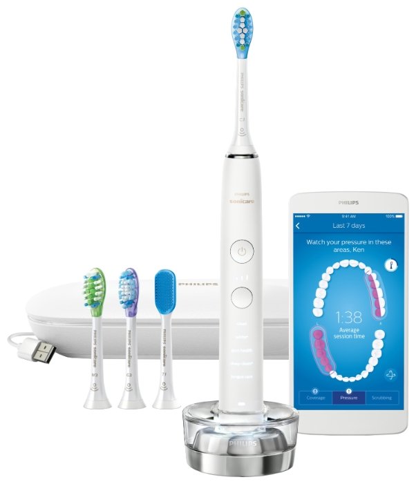 - насадки C3 Premium Plaque Control, G3 Premium Gum Care, W3 Premium White, насадка для чистки языка TongueCare+; 5 режимов работы и 3 уровня интенсивности; датчик чрезмерных движений, распознавание чистящей насадки и индикатор замены насадок BrushSync; время автономной работы 14 дней; футляр с USB зарядкой, стакан с зарядной базой