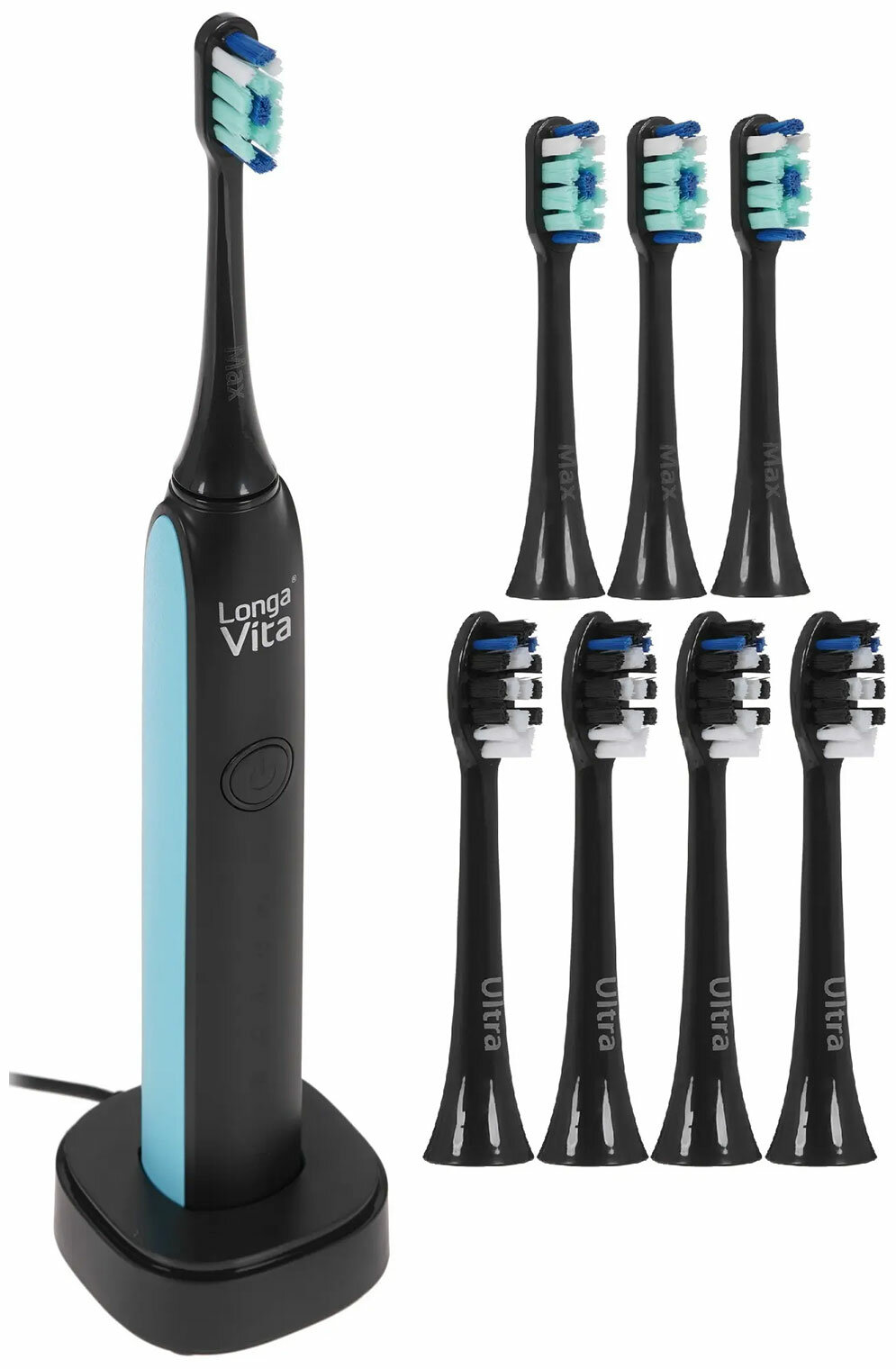 Электрическая зубная щетка Longa Vita Ultra Max B95R укомплектована 8 насадками двух типов - Max с увеличенным охватом и Ultra для чувствительных зубов. Щетинки имеют наглядные индикаторы износа. Щетка соответствует степени защиты IPX7 - устройство выдерживает даже кратковременные погружения в воду. Щетку можно мыть без каких-либо опасений.