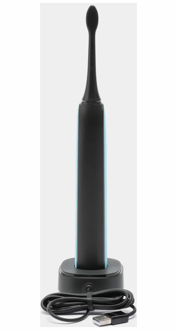 Устройство получает питание от аккумулятора, на полную зарядку которого уходит 3 ч. Имеется индикатор уровня заряда батареи. В комплектацию также входят дорожный футляр, зарядная база и 2 защитных колпачка.
