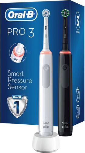 Набор из двух электрических зубных щеток Oral-B Pro 3 3500 Duo сделает уход за зубами еще эффективнее. Круглые насадки бережно удаляют зубной налет с поверхности эмали, а также около десен. Аккумуляторные зубные щетки Oral-B Pro 3 3500 Duo с технологией возвратно-вращательных движений удаляют на 100% больше зубного налета, чем мануальные аналоги. Устройства подходят для чистки чувствительных зубов и десен, особенно вместе с насадкой Sensitive, оснащенной ультратонкими щетинками. А насадка Cross Action с идеальным углом наклона щетинок обеспечит превосходную чистку.