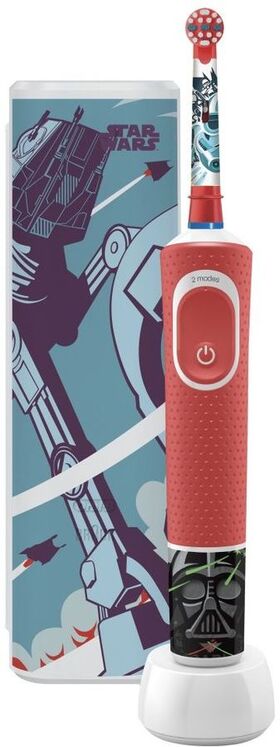 Описание: Электрическая зубная щетка Oral-B Kids для детей от 3 лет с веселыми героями мультфильма «Звездные войны» обеспечивает эффективный бережный уход за полостью рта ребенка от Oral-B. Она удаляет больше зубного налета по сравнению с обычной мануальной зубной щеткой.
