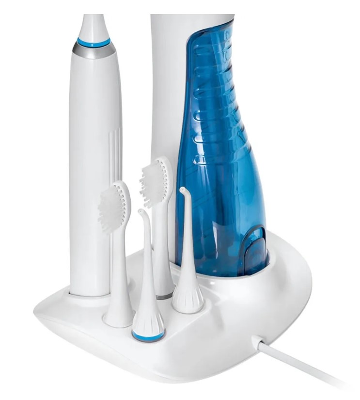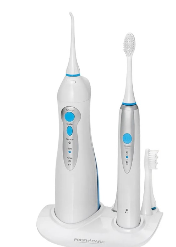 Набор ProfiCare PC-DC 3031 weiss действует от аккумулятора, а наличие яркого индикатора позволит вовремя подзарядить устройство. Ирригатор с резервуаром на 150 мл обладает пульсирующим принципом подачи воды, а также дополняется тремя рабочими режимами. Прибор дополнен удобными маркерными пометками и таймером.