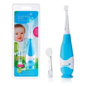 Зубная щетка Brush Baby BabySonic Blue комплектуется двумя насадками для детей до 1,5 года и от 1,5 до 3 лет. Ножка с присоской позволяет удобно хранить модель на любой гладкой горизонтальной поверхности.
