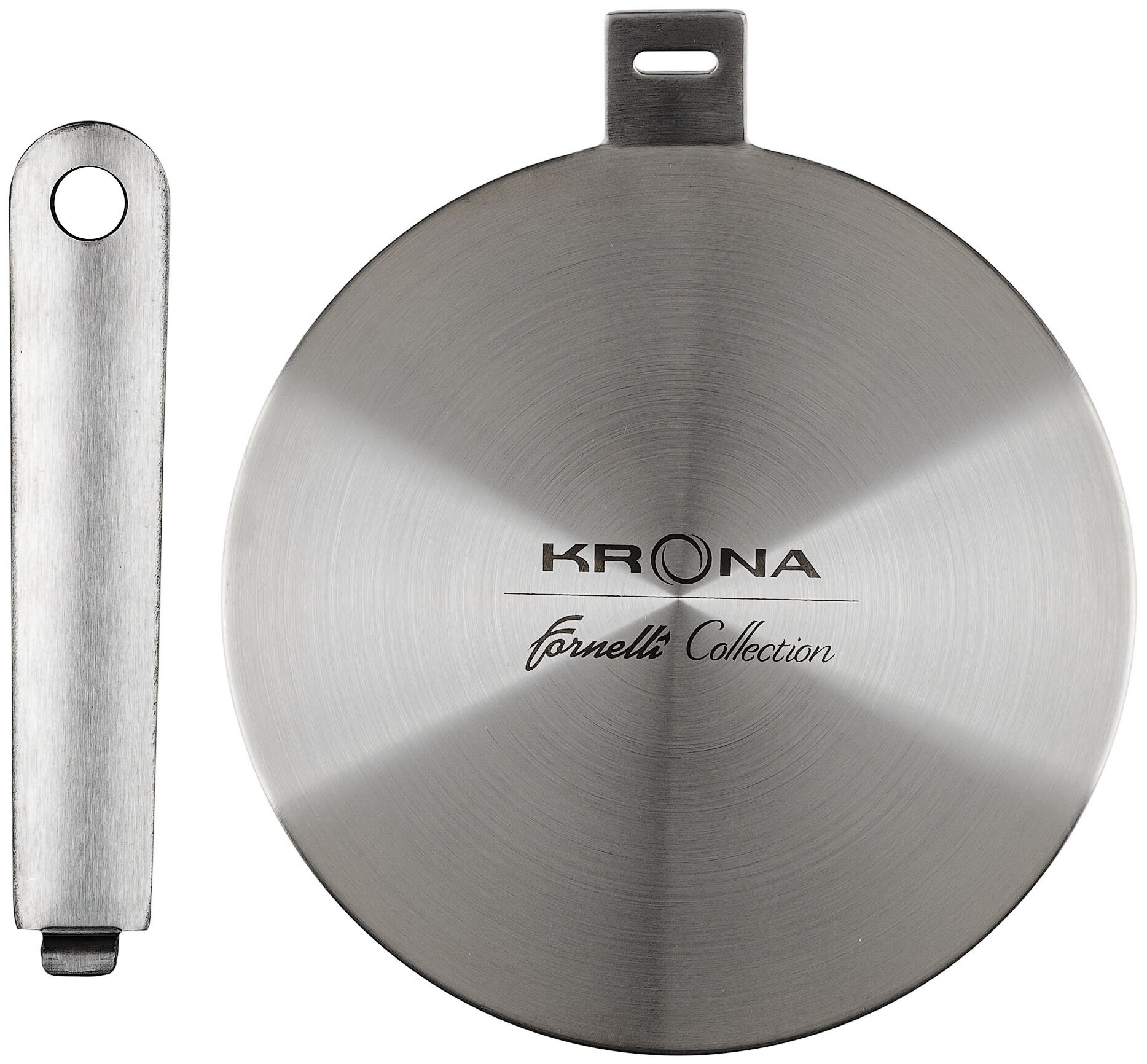 Специальный адаптер KRONA D20 для использования на индукционных поверхностях и плитах, который преобразовывает индукционный ток в тепло и передает его от поверхности к посуде.