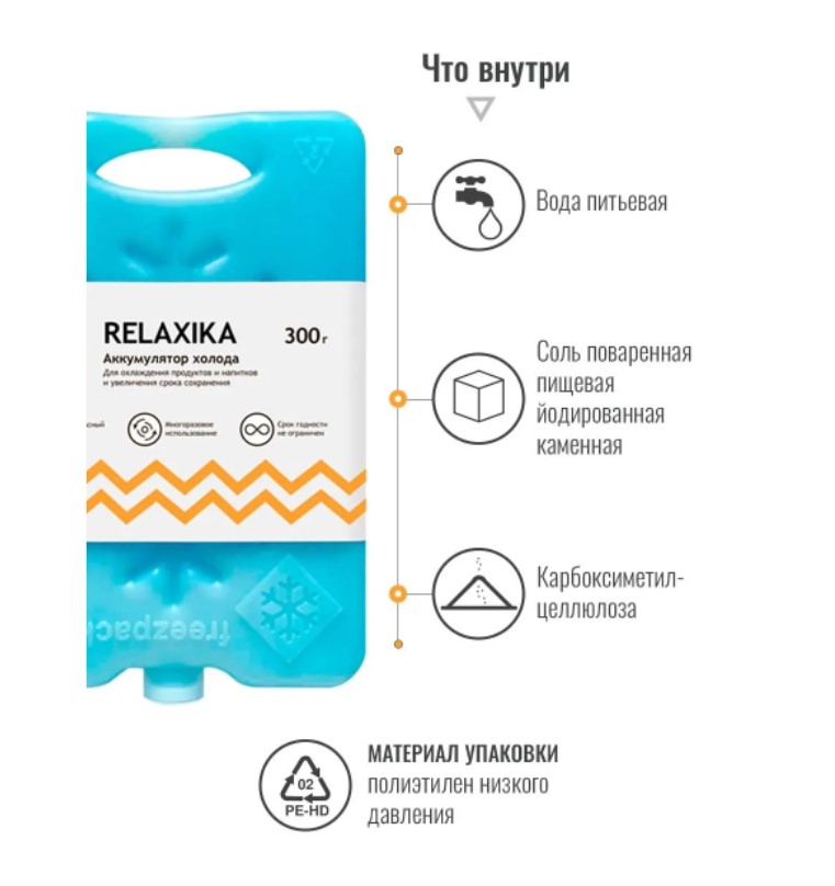 Аккумулятор холода Relaxika предназначены для поддержания холода в термосумках и термоконтейнерах, а также для использования в терапевтических целях в виде холодных компрессов по рекомендациям врача.