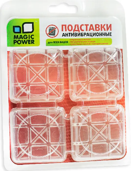 Антивибрационные подставки MAGIC POWER MP-610-1 можно использовать на любой поверхности, будь то деревянный пол или керамическая плитка. Сами подставки устойчиво фиксируются и не слетают. Предотвращение вибраций, устойчивость стиральной машины – все это обеспечивают подставки MAGIC POWER MP-610-1. В комплекте предусмотрено 4 штуки.