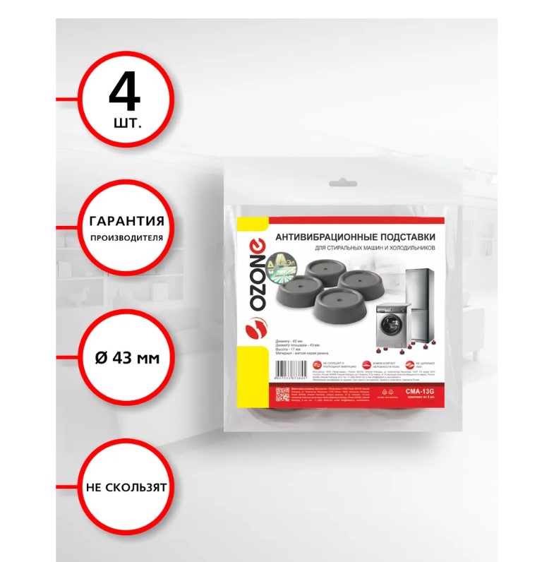 Антивибрационные подставки для стиральных машин и холодильников, 4 шт., цвет серый, круглые, бренд: OZONE, арт. CMA-13G