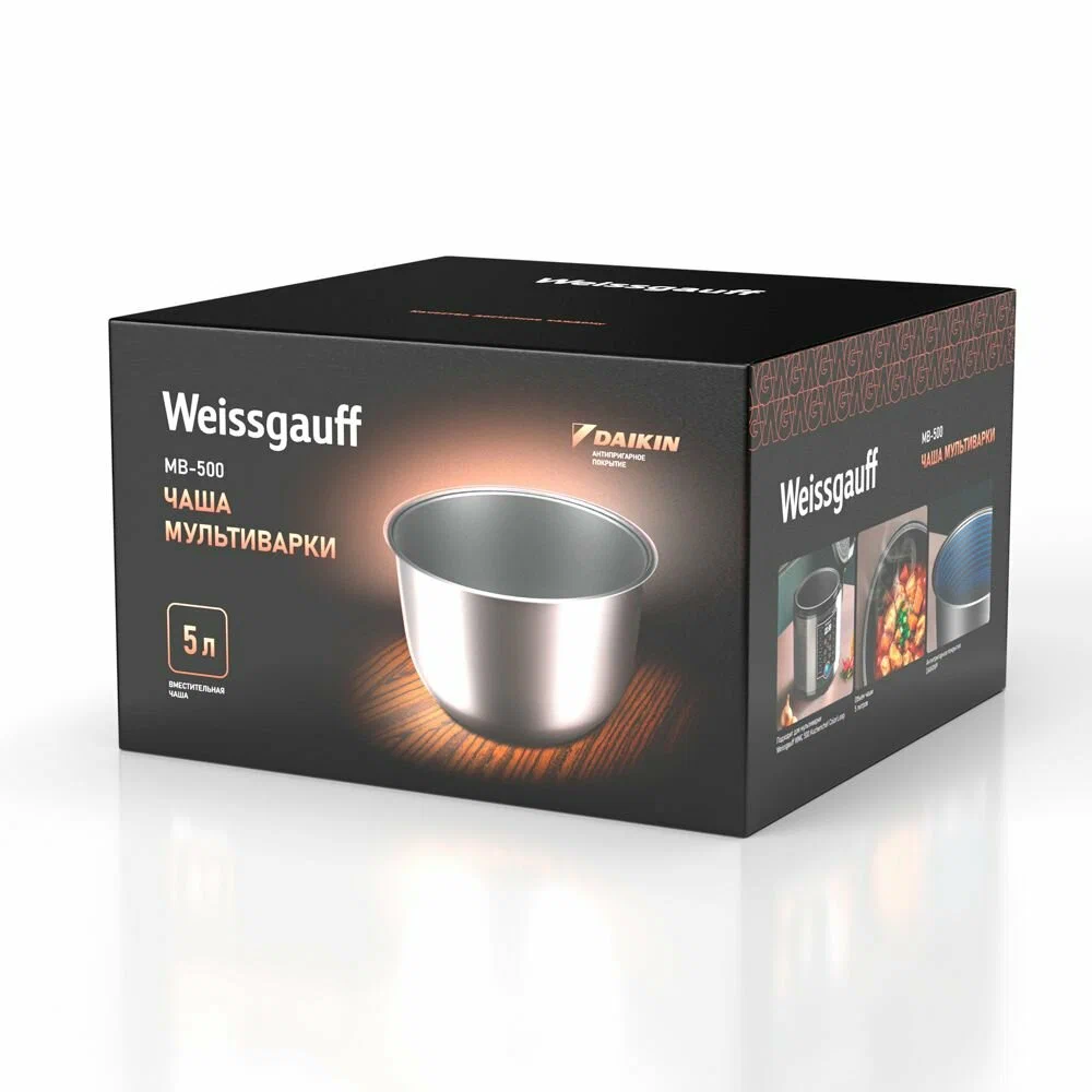 Чаша для мультиварки Weissgauff WMC 500 Kuchenchef ColorLoop объемом 5 литров и антипригарным покрытием от японского производителя Daikin.