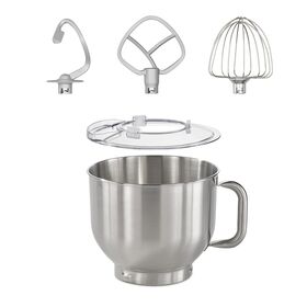 Чаша,; крюк для тяжелого теста; насадка для смешивания; венчик; защита от брызг