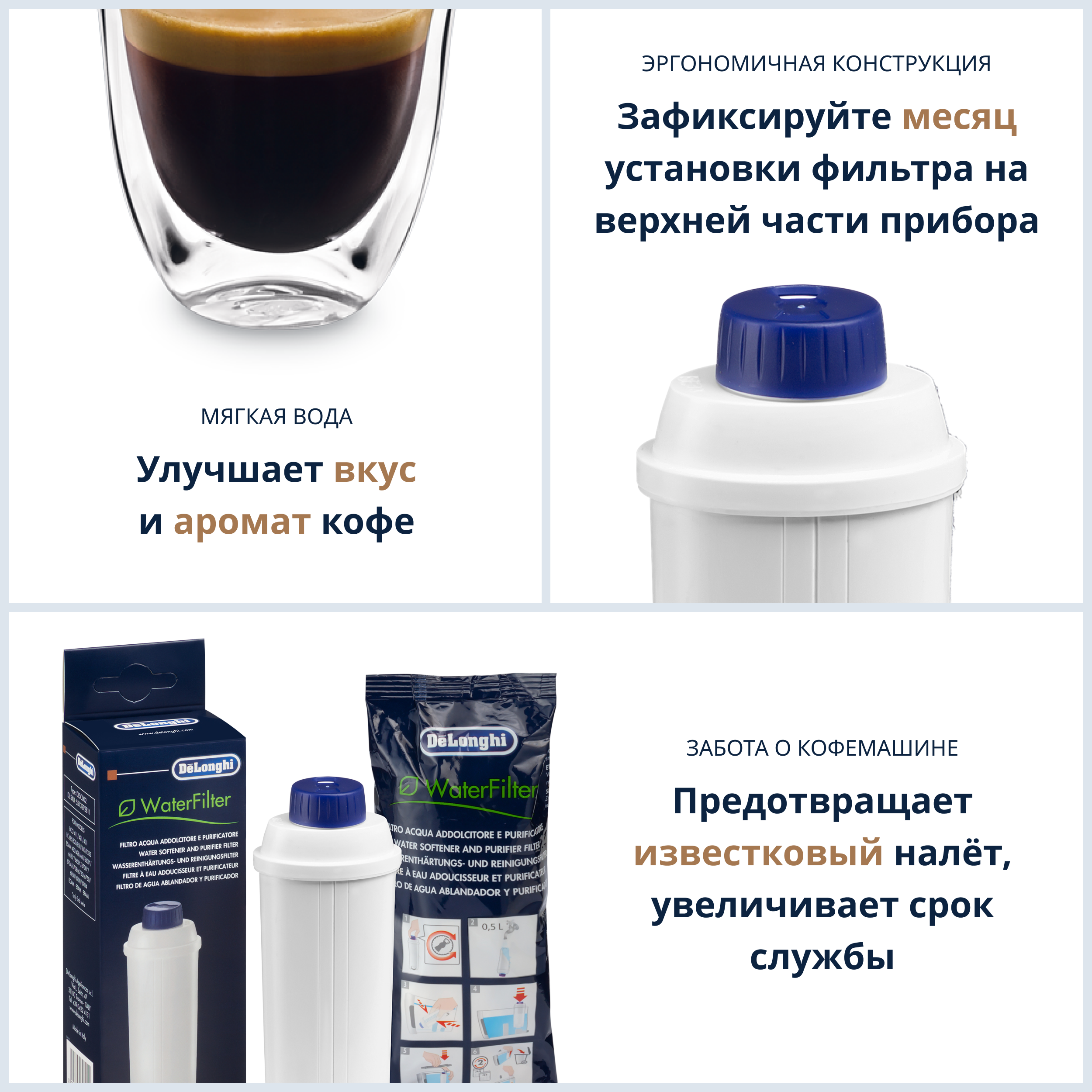 Картридж для кофемашин DeLonghi DLSC002 отвечает за очистку и смягчение воды. Он совместим с моделями серий ESAM, ECAM, ETAM и некоторыми кофеварками производителя.