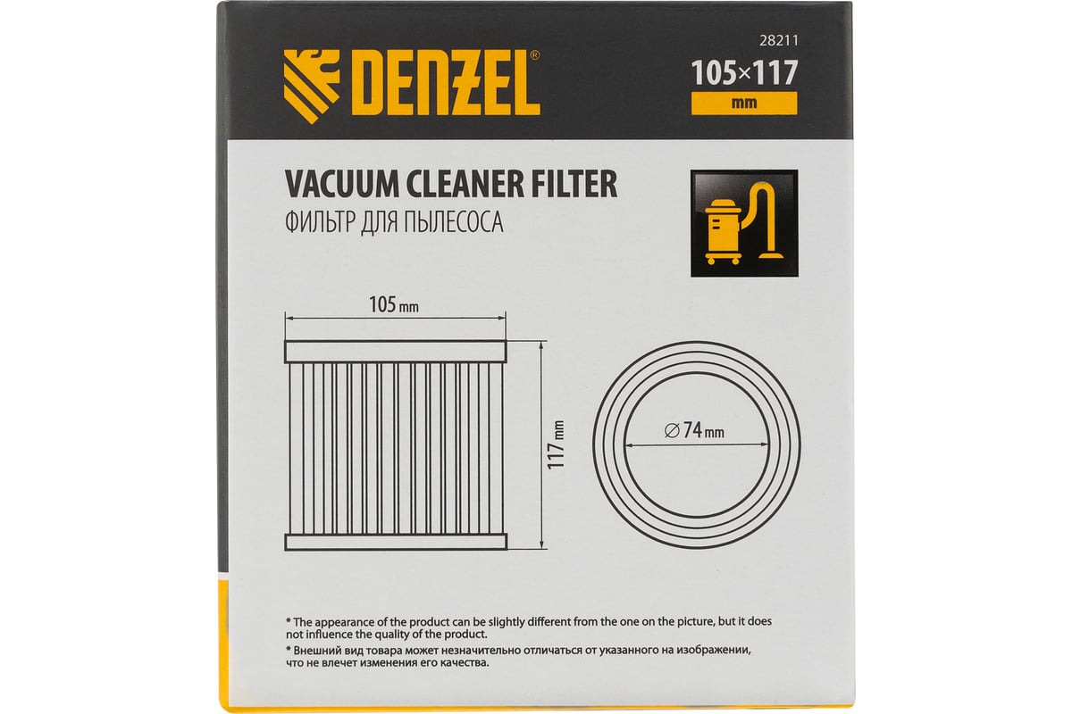 Каркасный складчатый HEPA-фильтр Denzel 28211 совместим со строительными пылесосами SVC15 (28201), LVC15 (28291). Устанавливается на корпус фильтра пылесоса и используется для проведения сухой уборки. Имеет класс фильтрации L, успешно справляется с частичками лака, краски, искусственного камня и т.п.