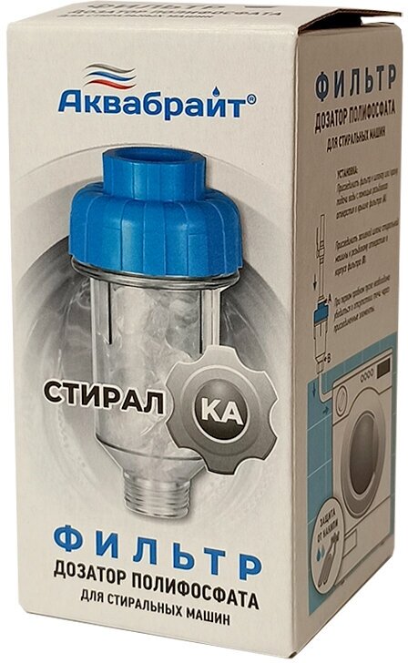 Фильтр-дозатор полифосфата для стиральных и посудомоечных машин АКВАБРАЙТ АБФ-СТИРАЛ 33692 предназначен для предотвращения образования отложений на нагревательных элементах стиральных машин и уменьшает расход стирального порошка.
