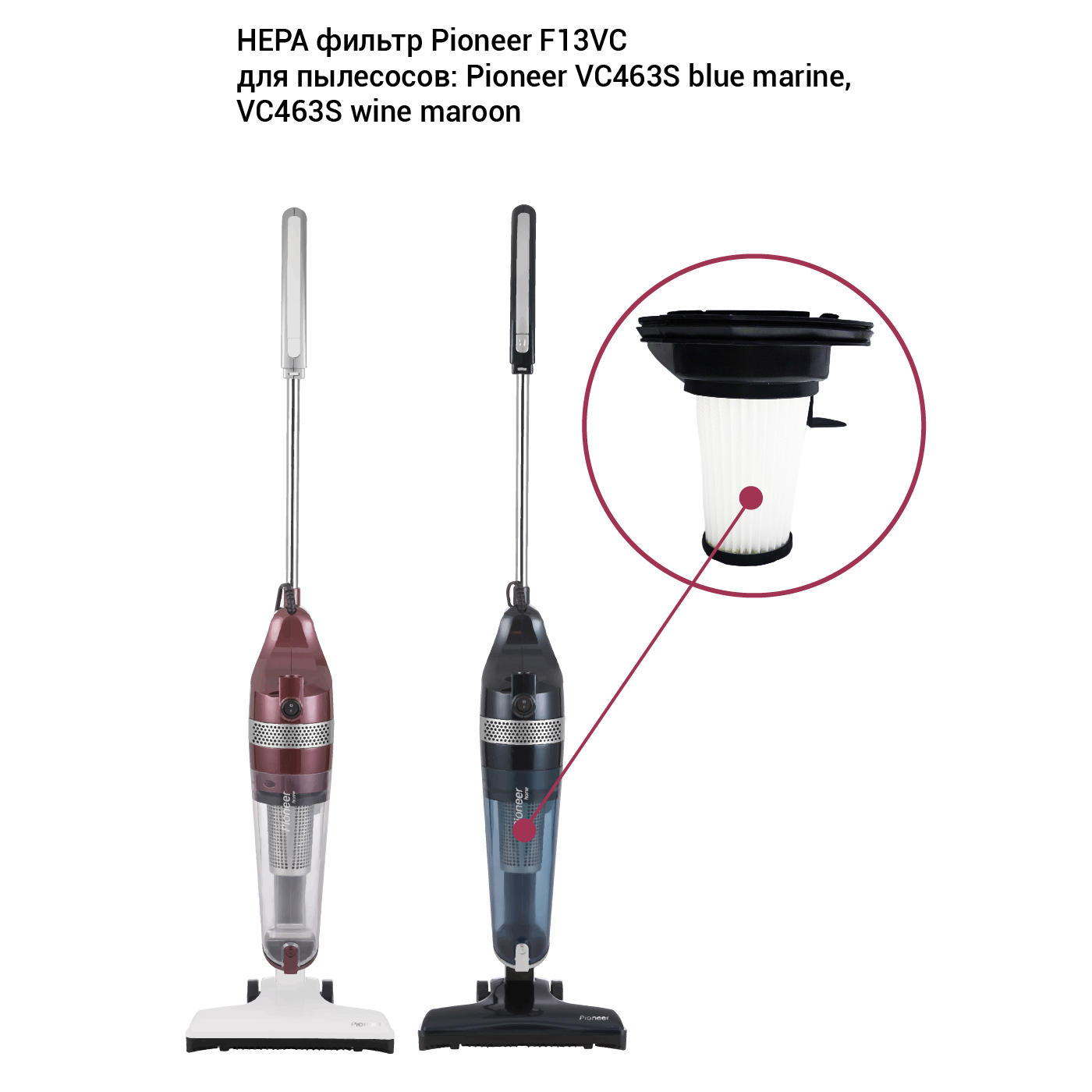 HEPA фильтр для пылесоса Pioneer F13VC предназначен для пылесосов Pioneer VC463S blue marine и VC463S wine maroon.