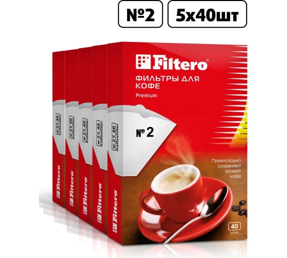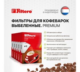 Комплект фильтров для кофе №2, 200 шт. бел Filtero используется с кофемашинами капельного типа для очистки жидкости от мелких частиц молотого кофе. При этом вкус и цвет напитка не меняются.