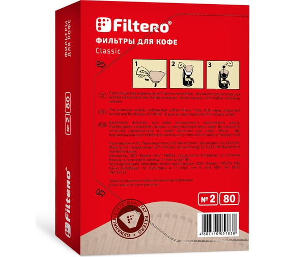 Фильтры для кофе, №2, 80 шт., корич FILTERO 2/80 используются с кофемашинами капельного типа для очистки жидкости от мелких частиц молотого кофе. При этом вкус и цвет напитка не меняются.