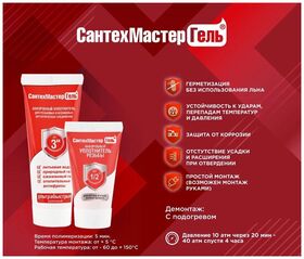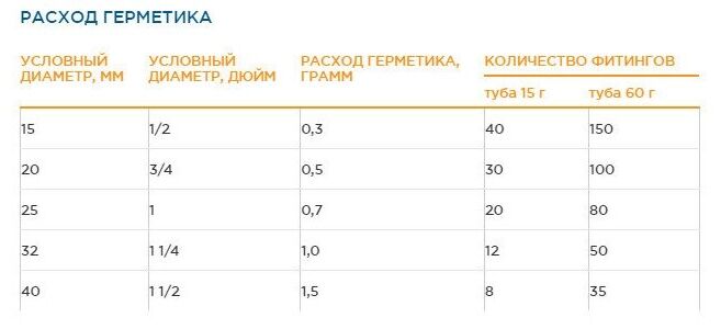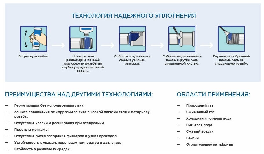 диаметр резьбы до 3", время полимеризации - 5 мин, температура монтажа - от +5°C, демонтаж с подогревом