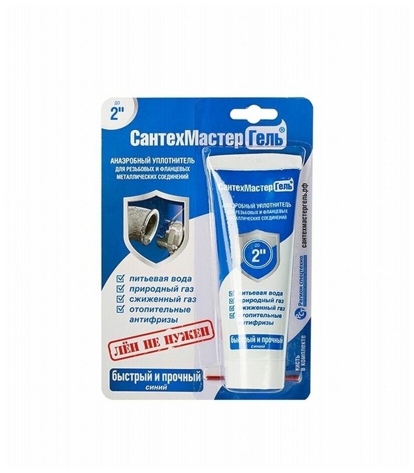 Анаэробный герметик «СантехМастерГель» (120 г) предназначен для монтажа металлических резьбовых и фланцевых соединений. Образует высокопрочное уплотнение, устойчивое к различным средам: вода, природный и сжиженный газ, бензин, отопительные антифризы и др.