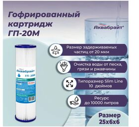 Картридж ГП-20М представляет собой гофрированный фильтр, предназначенный для механической очистки воды. Он является незаменимым компонентом систем водоочистки, использование которого позволяет эффективно удалять различные механические примеси из воды.