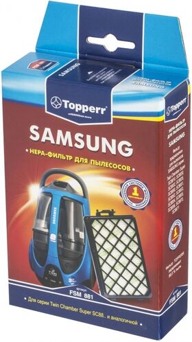 Фильтр Hepa Topperr FSM 881 для пылесосов Samsung обладает высочайшей степенью фильтрации, задерживает 99,5% пыли. Благодаря специальным свойствам фильтрующего материала, фильтр улавливает мельчайшие частицы, позволяя очищать воздух от пыльцы, микроорганизмов, бактерий и пылевых клещей.