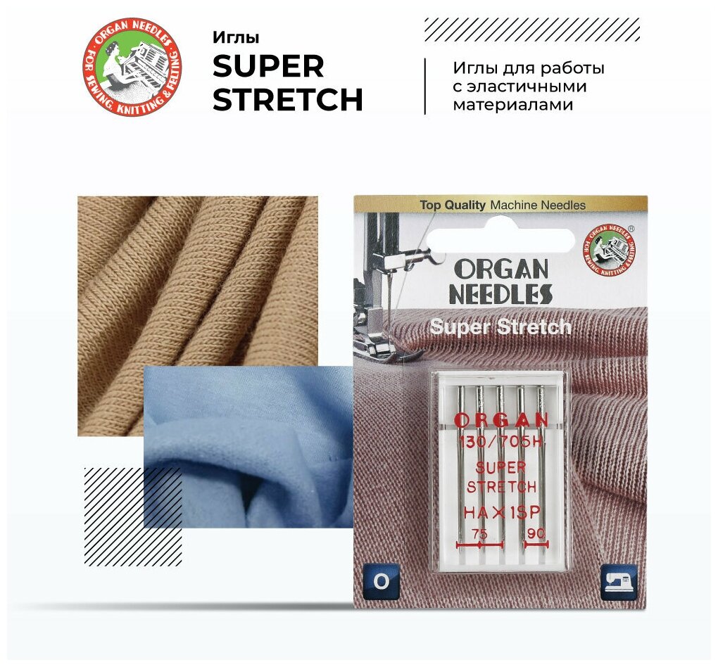 Иглы супер стретч № 75 и 90 предназначены для шитья высокоэластичных материалов.