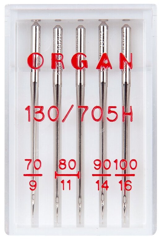 Набор стандартных игл (в блистере) Organ №70-100, 5 шт. разных размеров для шитья различных материалов: