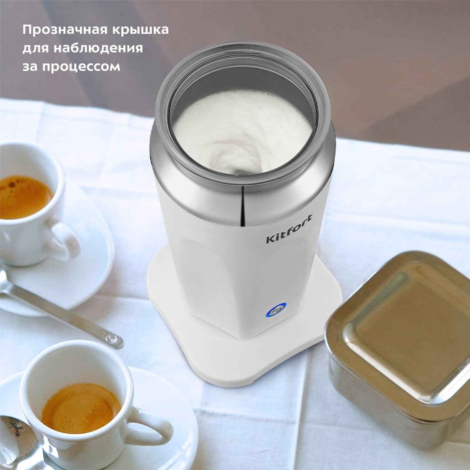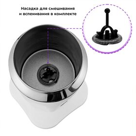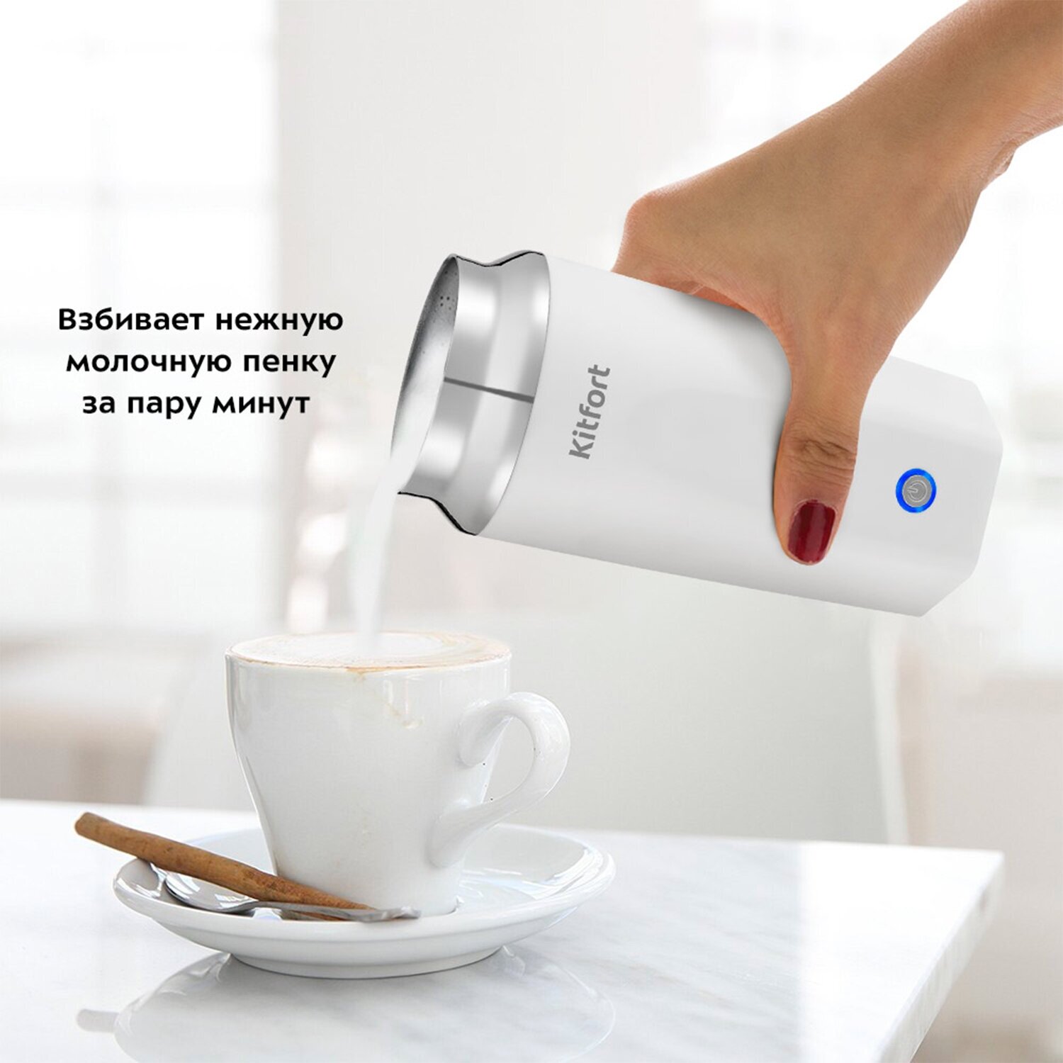 Капучинатор КТ-7118 – это устройство для приготовления молочной пенки, используемой для напитков на базе эспрессо: капучино, латте и латте макиато. С помощью прибора также можно смешивать жидкости и готовить какао.