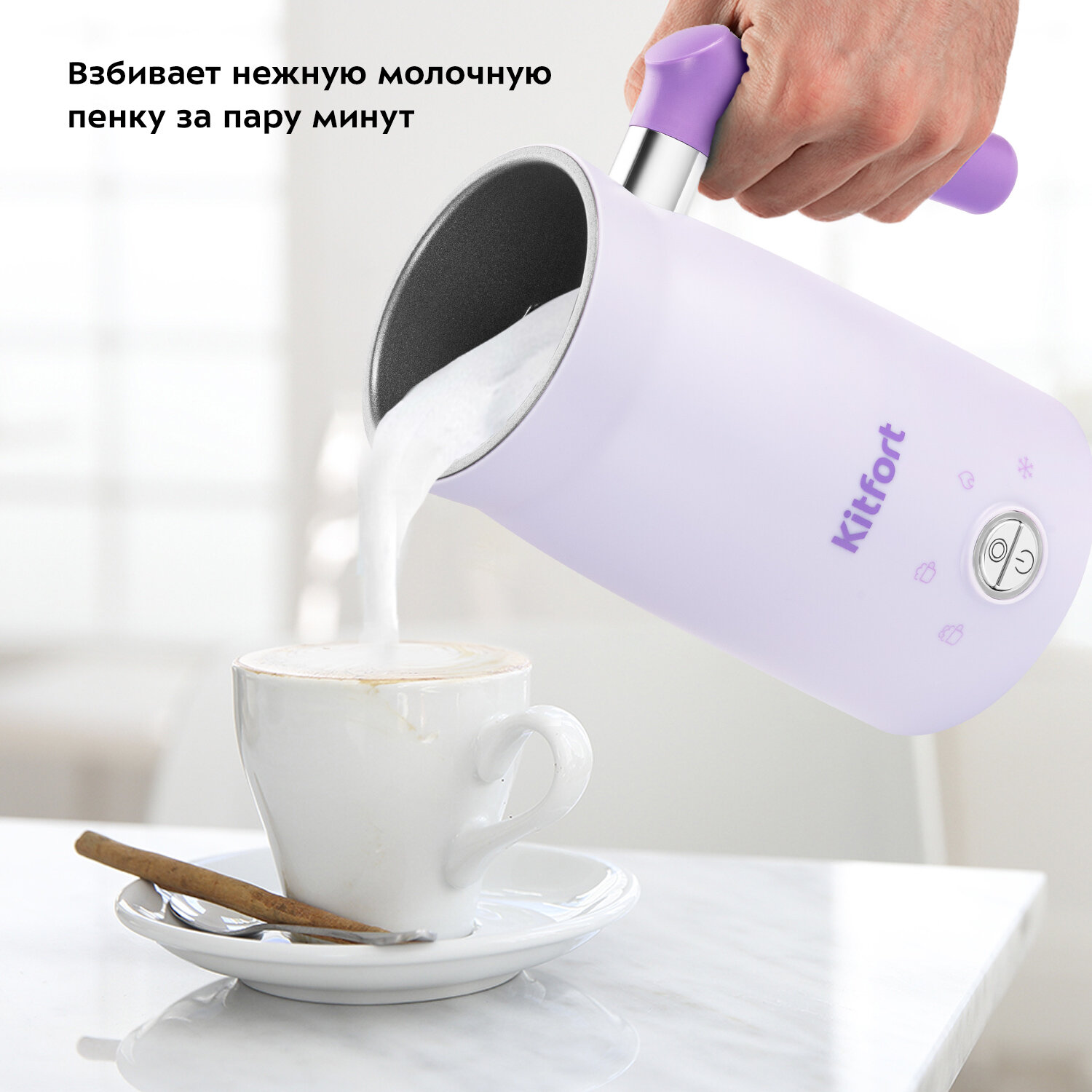 Питчер имеет антипригарное покрытие. Длина шнура – 1,2 м позволяет использовать устройство на большом расстоянии от розетки. А через прозрачную крышку вы можете наблюдать за процессом приготовления идеальной молочной пенки.