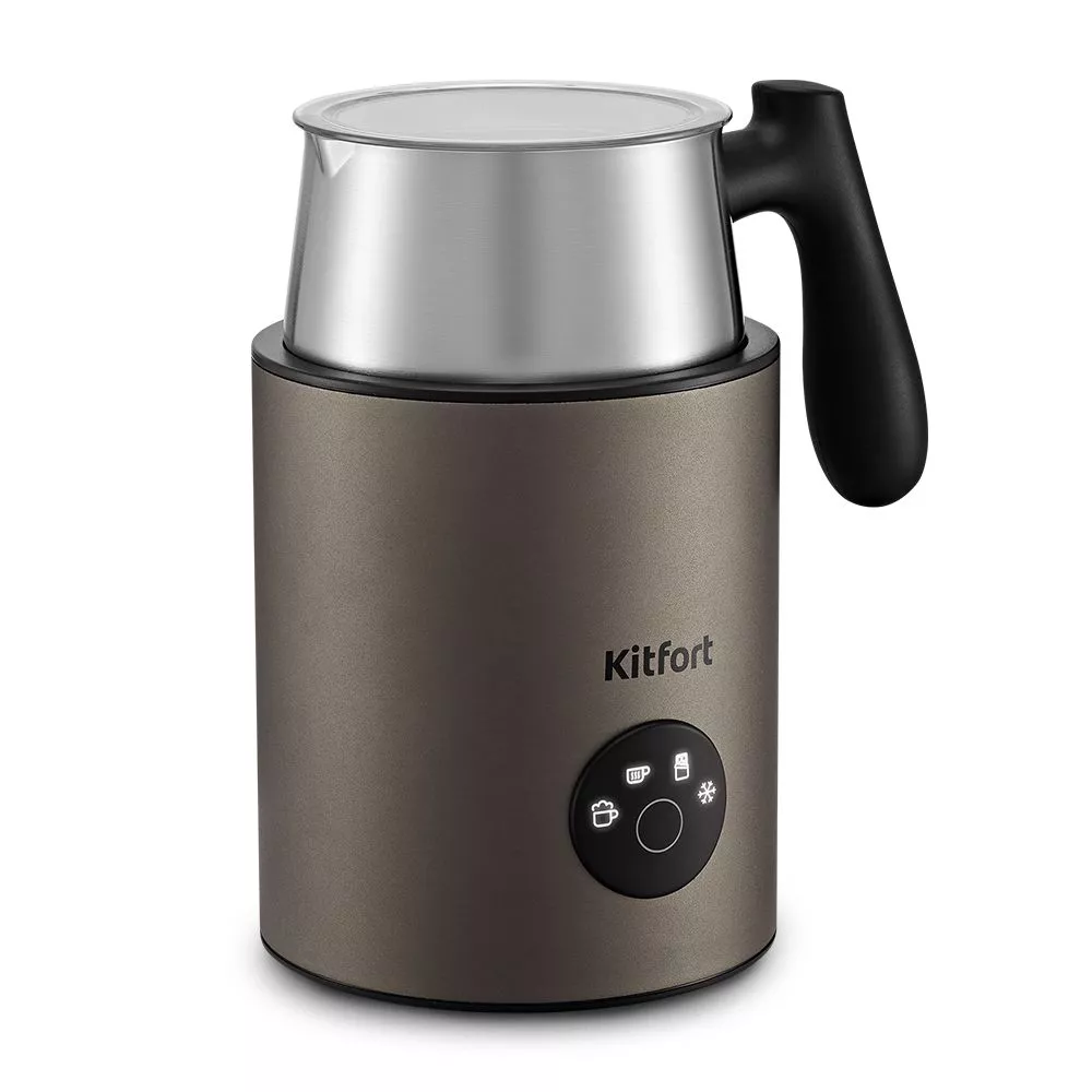 Капучинатор Kitfort КТ-7273 порадует вас не только пышной молочной пенкой, но и своим стильным дизайном. Устройство компактное, ручка питчера пластиковая, не нагревается и удобно лежит в руке.