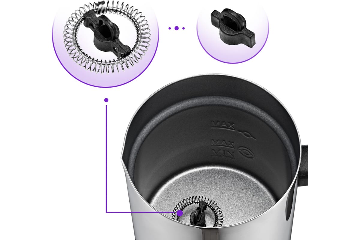 Капучинатор KITFORT КТ-758 - это устройство для приготовления молочной пенки, используемой для напитков на базе эспрессо: капучино, латте и латте макиато. Прибор автоматически отключается, когда процесс вспенивания или смешивания выполнен. Насадка для смешивания используется для перемешивания молока во время его подогрева. Насадка для вспенивания служит для получения молочной пенки. Сам питчер имеет антипригарное покрытие. Прибор работает в четырёх режимах: горячее и холодное вспенивание, смешивание с подогревом и без.