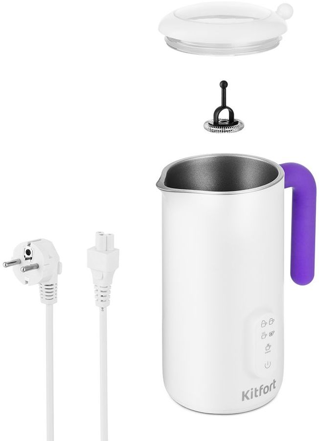 Капучинатор Kitfort КТ-774 - устройство для приготовления молочной пенки для напитков на базе эспрессо: капучино, латте и латте макиато. С помощью прибора также можно смешивать и подогревать соусы, делать какао и взбитые сливки.