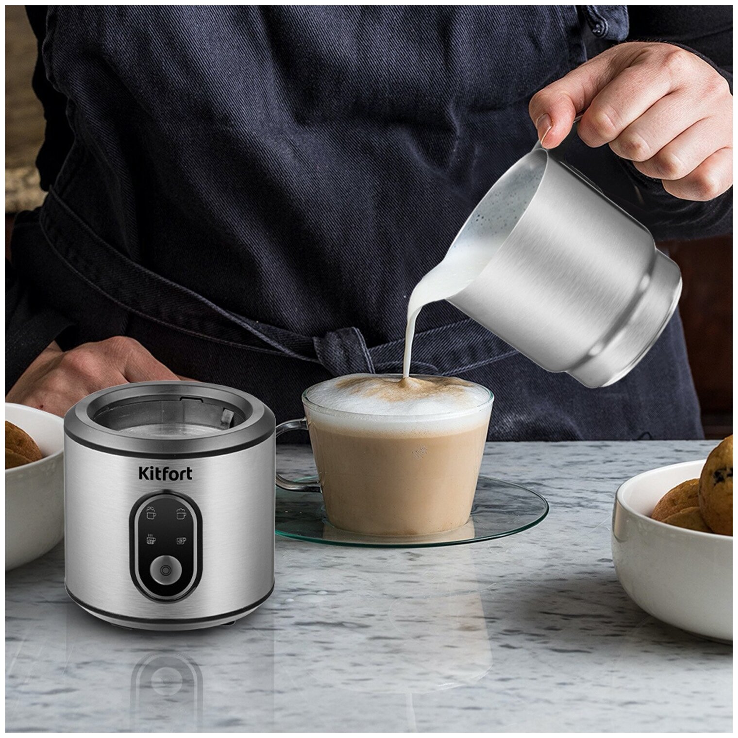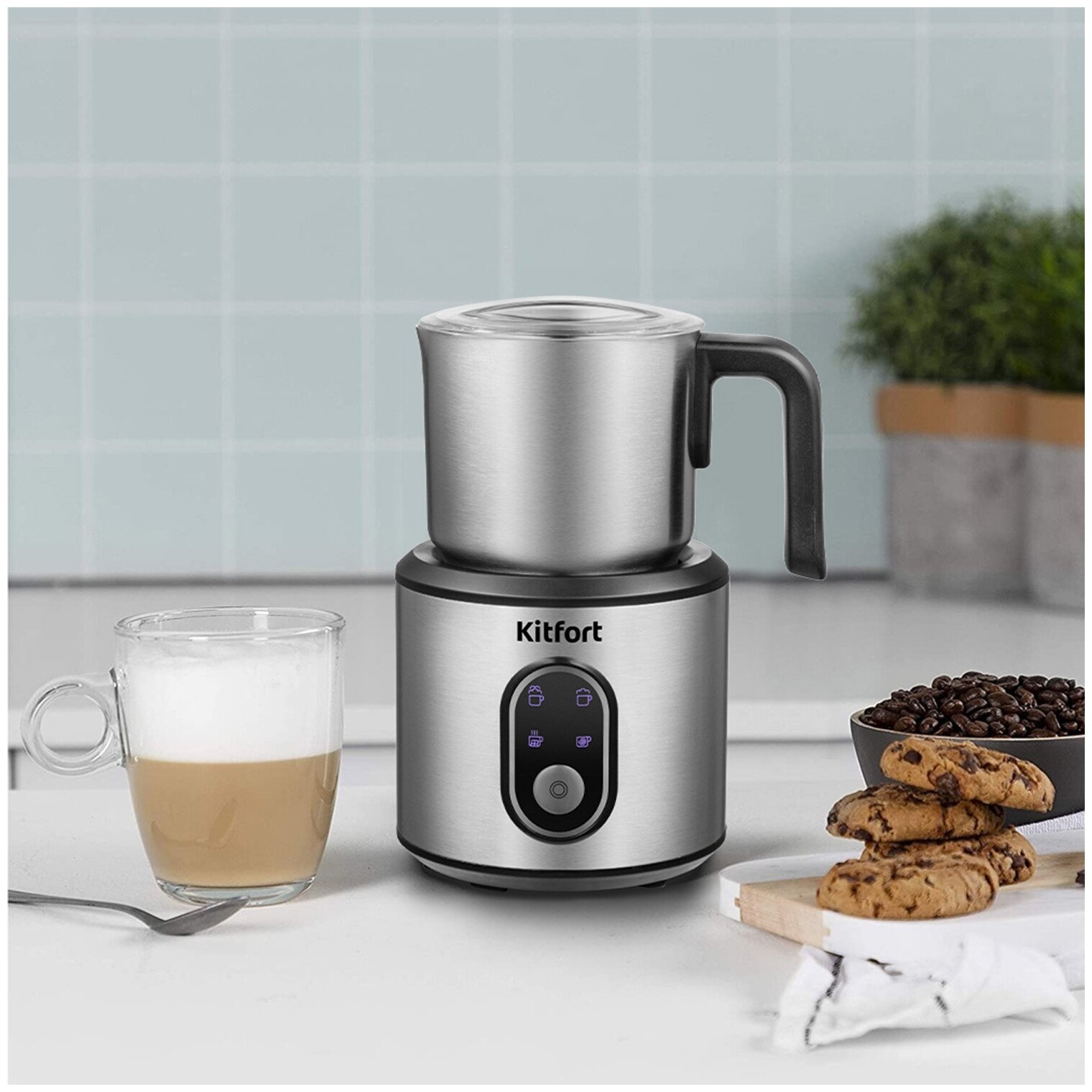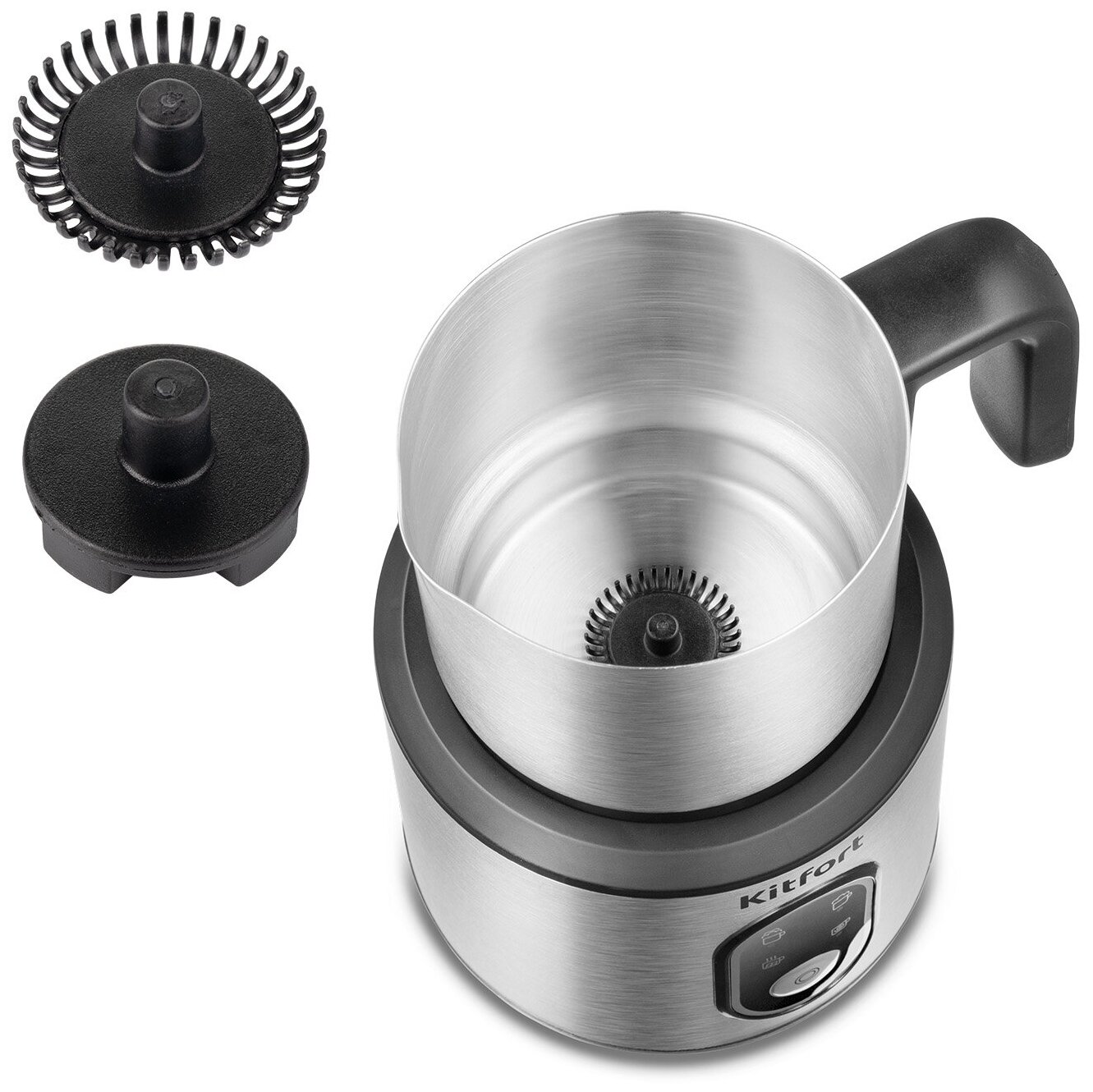 Капучинатор КТ-794 – это устройство для приготовления молочной пенки, используемой для напитков на базе эспрессо: капучино, латте и латте макиато. С помощью прибора также можно смешивать и подогревать соусы, делать какао и взбитые сливки. Капучинатор - идеальный выбор для тех, кому не хочется осваивать процесс самостоятельного вспенивания молока, следить за температурой, добиваться плотной однородной пены. Достаточно наполнить капучинатор нужным количеством молока и включить прибор. Прибор работает в 4-х режимах: вспенивание воздушной и густой пены или лёгкой пенки с подогревом, вспенивание без подогрева и смешивание с подогревом. Устройство автоматически отключается, когда процесс вспенивания или смешивания выполнен. Насадка для смешивания используется для перемешивания молока во время его подогрева, насадка для вспенивания - для получения молочной пенки. Сам питчер имеет антипригарное покрытие и прозрачную крышку для наблюдения для процессом. Все части капучинатора съёмные и поэтому легко очищаются. Прибор удобно хранить, благодаря компактному размеру и съёмному кабелю питания. Капучинатор выполнен из нержавеющей стали в минималистичном дизайне, благодаря чему устройство легко впишется в интерьер вашей кухни. Пышная и нежная пенка как в кофейне – теперь у Вас дома.